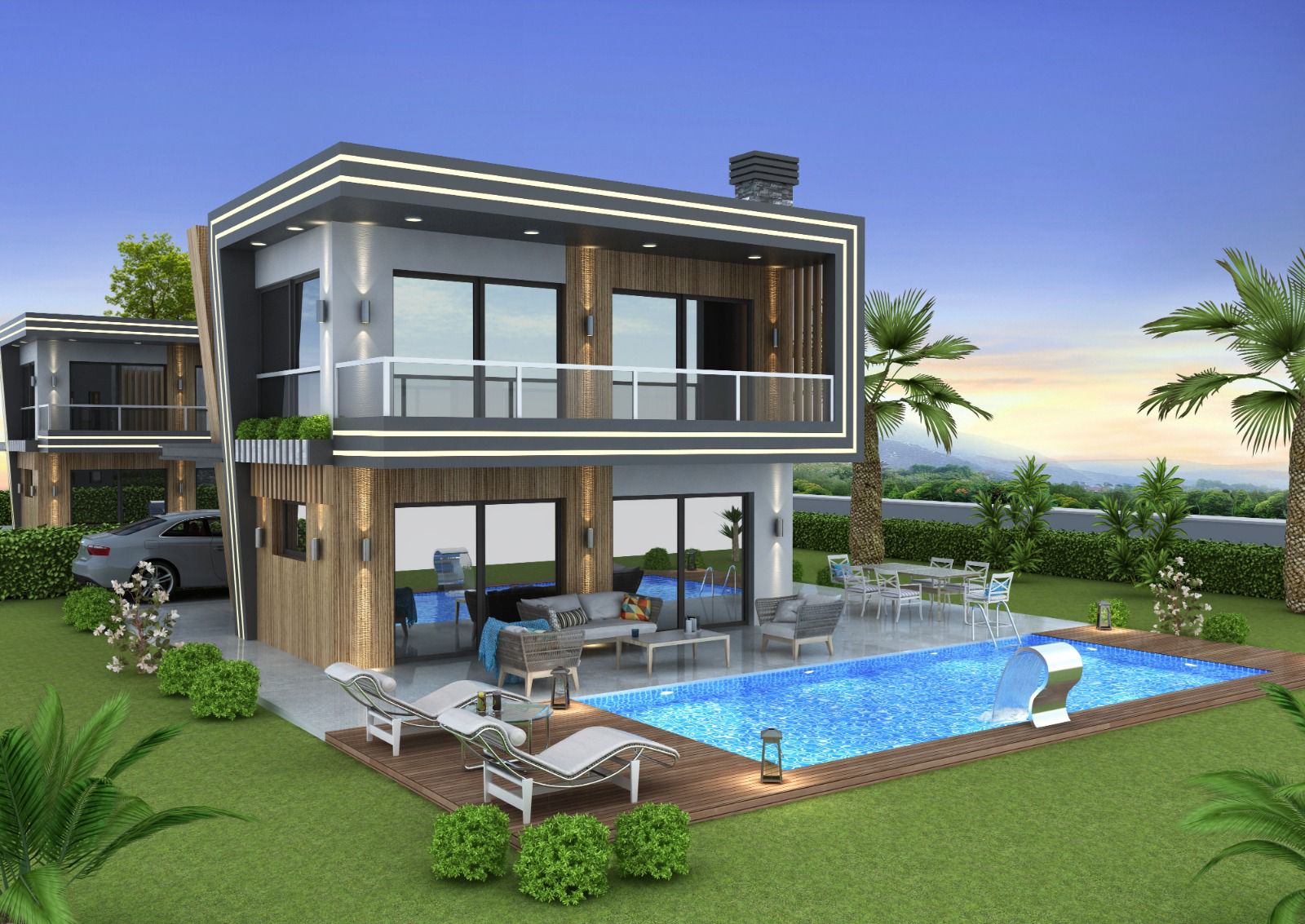 İnşaatlarımız dış tasarımı, göz alıcı bir görsel şölen sunmaktadır. Villa, geniş cam pencereleri ve açık terasları sayesinde doğal ışığın içeriye akmasını sağlamaktadır. Bahçeyle iç içe olması, doğanın içinde hissetmenizi sağlarken, villanın modern çizgileri de lüks bir atmosfer oluşturur.